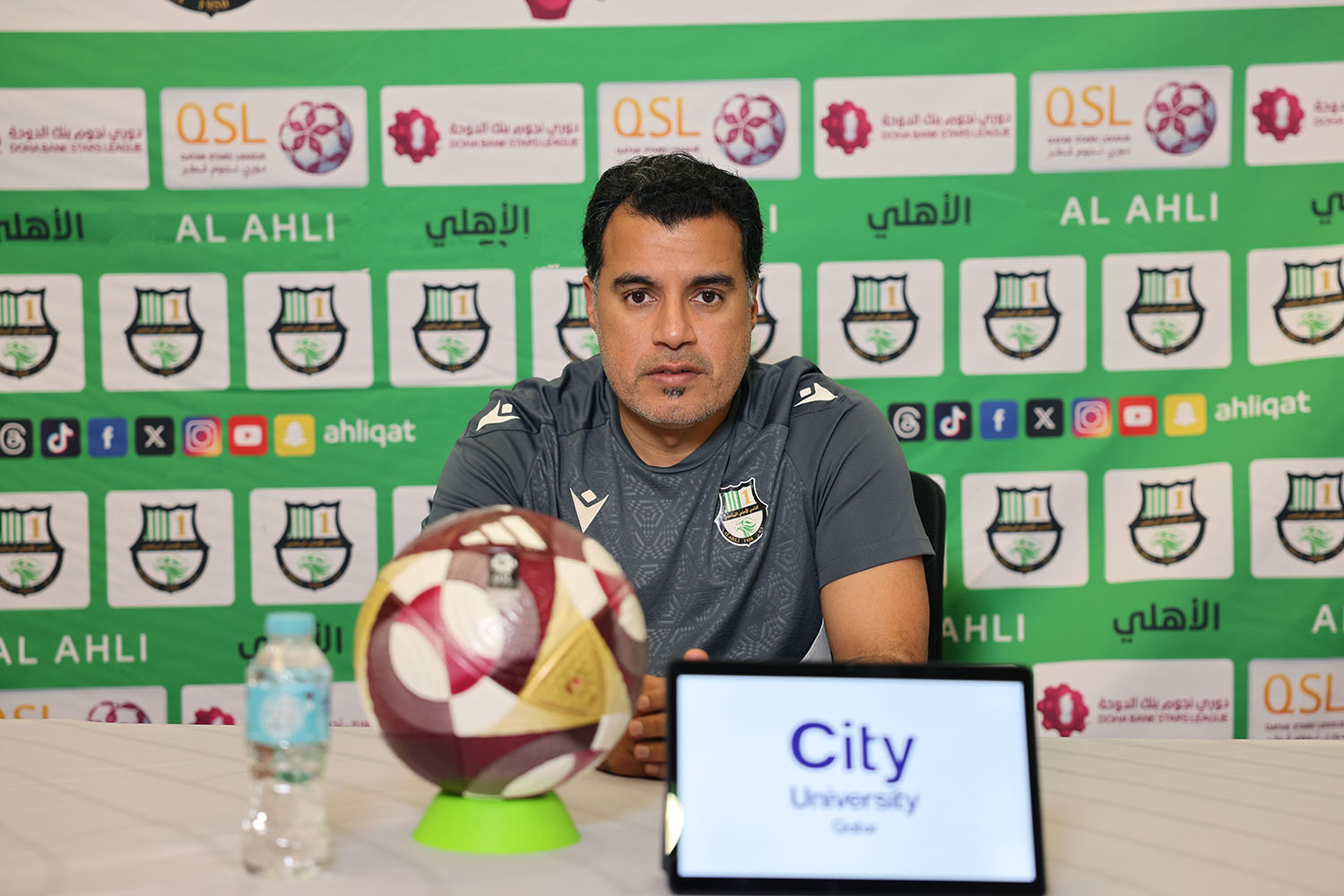 وقال المدرب في مؤتمر صحفي قبل المباراة إن موقف الاهلي يتطلب الدخول للمباراة بتركيز عال على الأداء الجيد والوصول للنقاط خصوصا وأن المنافس هو فريق الدحيل الذي يعتبر قويا جدا ولابد من اللعب أمامه بافضل درجات التركيز من أجل التفوق عليه في المباراة.